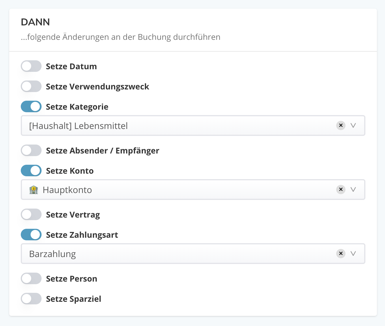 Import-Regeln funktionieren nach dem Prinzip WENN ... DANN ... und werden auf jede einzelne Buchung angewendet.
